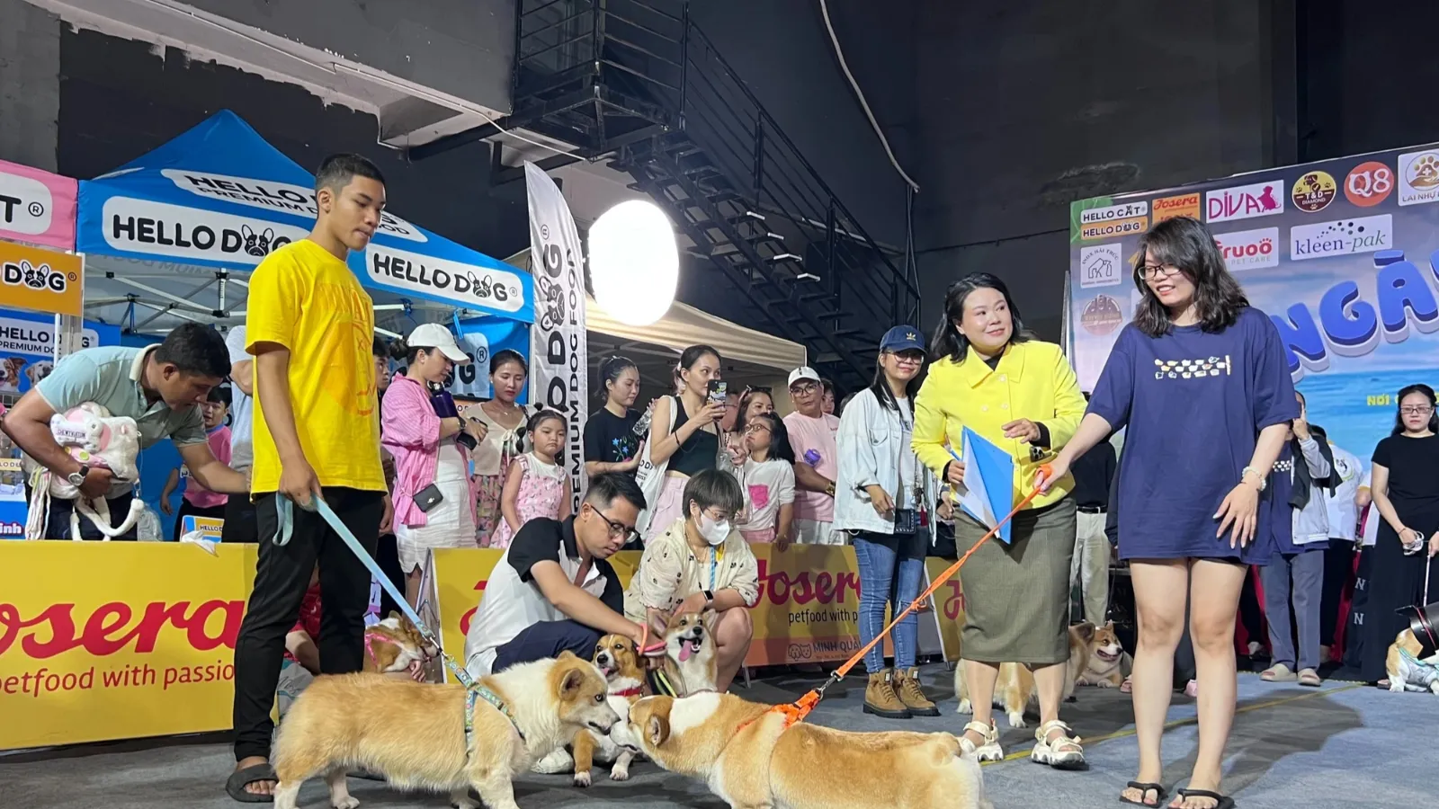 Những chú chó Corgi được chủ nhân dẫn đến dự thi hạng mục chó đẹp. BGK xét giải dựa trên những tiêu chí như: lông mượt, móng được cắt tỉa gọn gàng, khung xương, hộp sọ, sự thân thiện...
