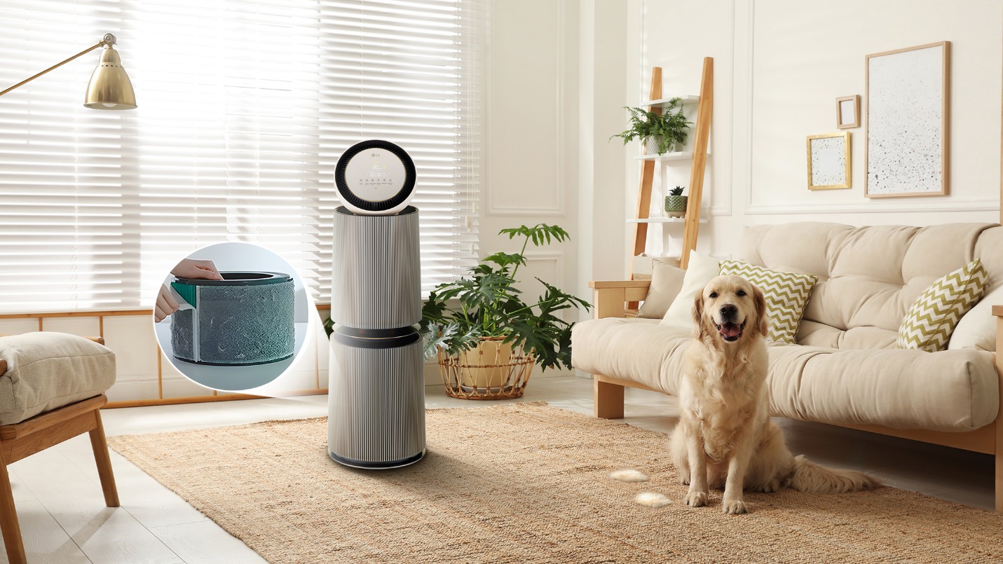 Sự xuất hiện của chiếc máy lọc không khí LG PuriCare 360 Alpha chính là cách giúp "hợp thức hóa" sự hiện diện tích cực, khỏe mạnh của thú cưng trong không gian sống lý tưởng. Bạn vẫn có thể hàng ngày vui đùa với chó mèo, không cần ngăn cản chúng oằn mình trên chiếc sofa, hay "thả dáng" thoải mái trên giường ngủ vì đã có sự giúp sức của giải pháp thanh lọc không khí chuyên dụng LG PuriCare 360 Alpha.